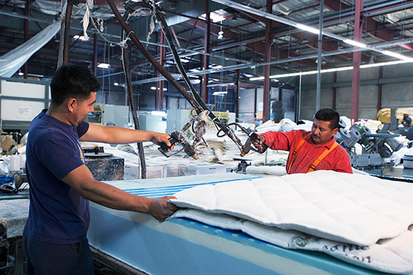 Our 100,000 square feet factory produce about 200 mattress a day with our skillful workers that start daily at 6:00am in the morning. From making coils for our boxspring mattress, operating machinery for pocket coils, top covers, adding supporting foam, assembly, sewing , packing and compressing some of the products together. Well as on the other hand we are busy loading trucks of merchandise ready to go any location throughout the country. We take pride in our craftmanship and most of them have been with the company since decades ago.