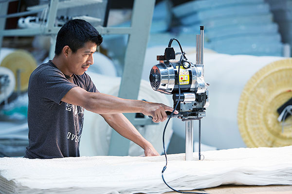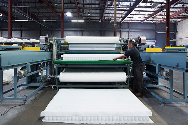 Our 100,000 square feet factory produce about 200 mattress a day with our skillful workers that start daily at 6:00am in the morning. From making coils for our boxspring mattress, operating machinery for pocket coils, top covers, adding supporting foam, assembly, sewing , packing and compressing some of the products together. Well as on the other hand we are busy loading trucks of merchandise ready to go any location throughout the country. We take pride in our craftmanship and most of them have been with the company since decades ago.